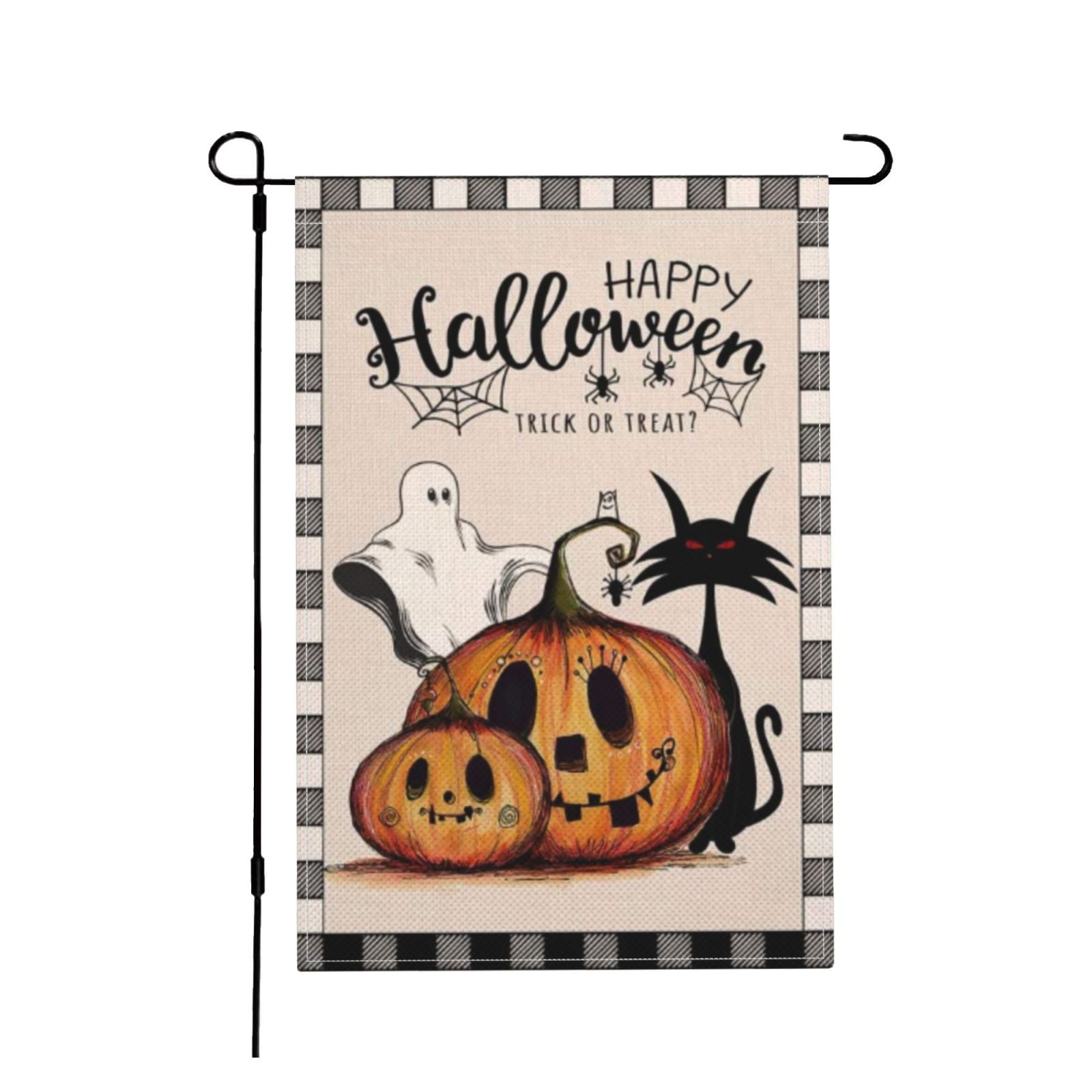 Halloween Pumpkin Cat Ghost Garden Flag Vertical Double Sided Black Buffalo Check Burlap Yard Outdoor Decor 12 X 18 Inches Walmart Com